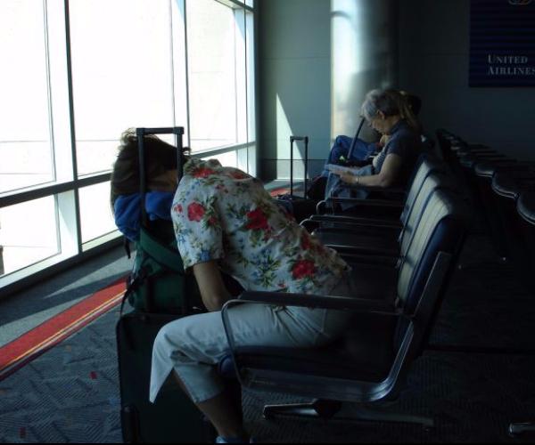 This lady hacks sleeping at the airports by burying her face deep into her luggage.