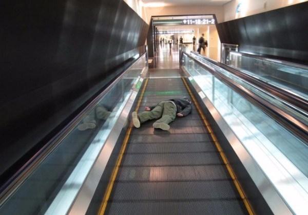 This is a game I like to play at airports, is this person dead or dead asleep?