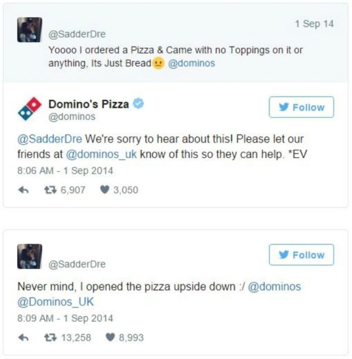 in LOL 10 Hilarious Tweets To And From UK Companies May 2, 2019, 7:00 am 3.7k Views 57shares Facebook Twitter Pinterest LinkedIn Domino’s Next time, before making a conclusion and tweeting out, you should make sure that you are looking at both sides of the issue. Page 10 of 10Previous 12345678910Next posttwitter What do you think? 0 Points Upvote Downvote