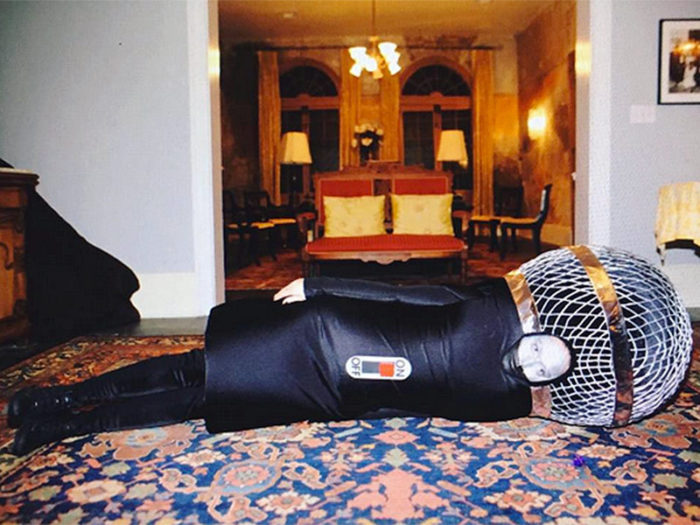 The singer wore a full-body microphone costume and laid on the floor to be a “mic drop” in 2015.